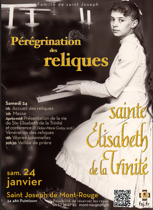 Samedi 24 janvier : présence des reliques de Sainte Élisabeth de la Trinité