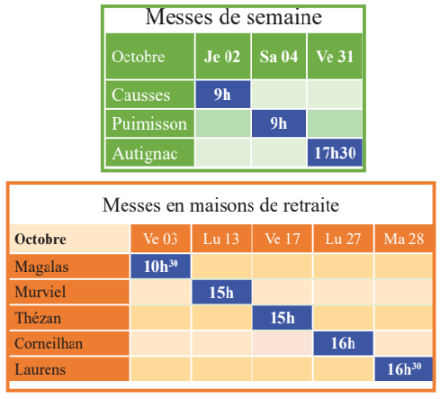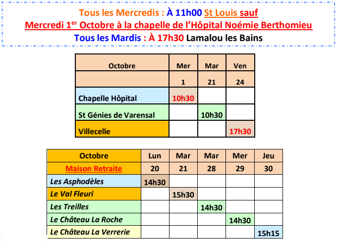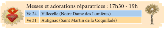 Octobre 2025 Messe + adoration réparatrice sur les 2 paroisses Notre Dame des Lumières Saint Martin de la coquillade