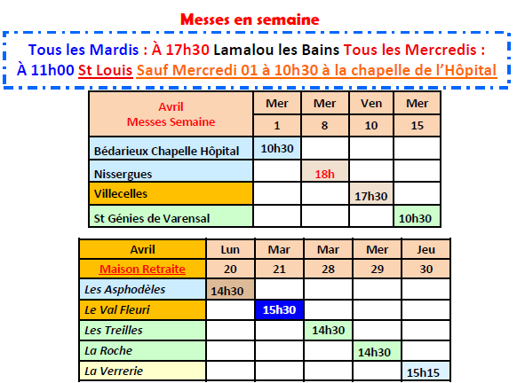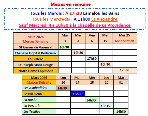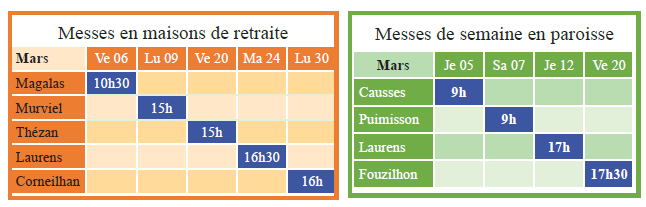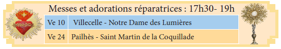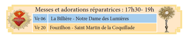 Mars 2026 Messe + adoration réparatrice sur les 2 paroisses Notre Dame des Lumières Saint Martin de la coquillade
